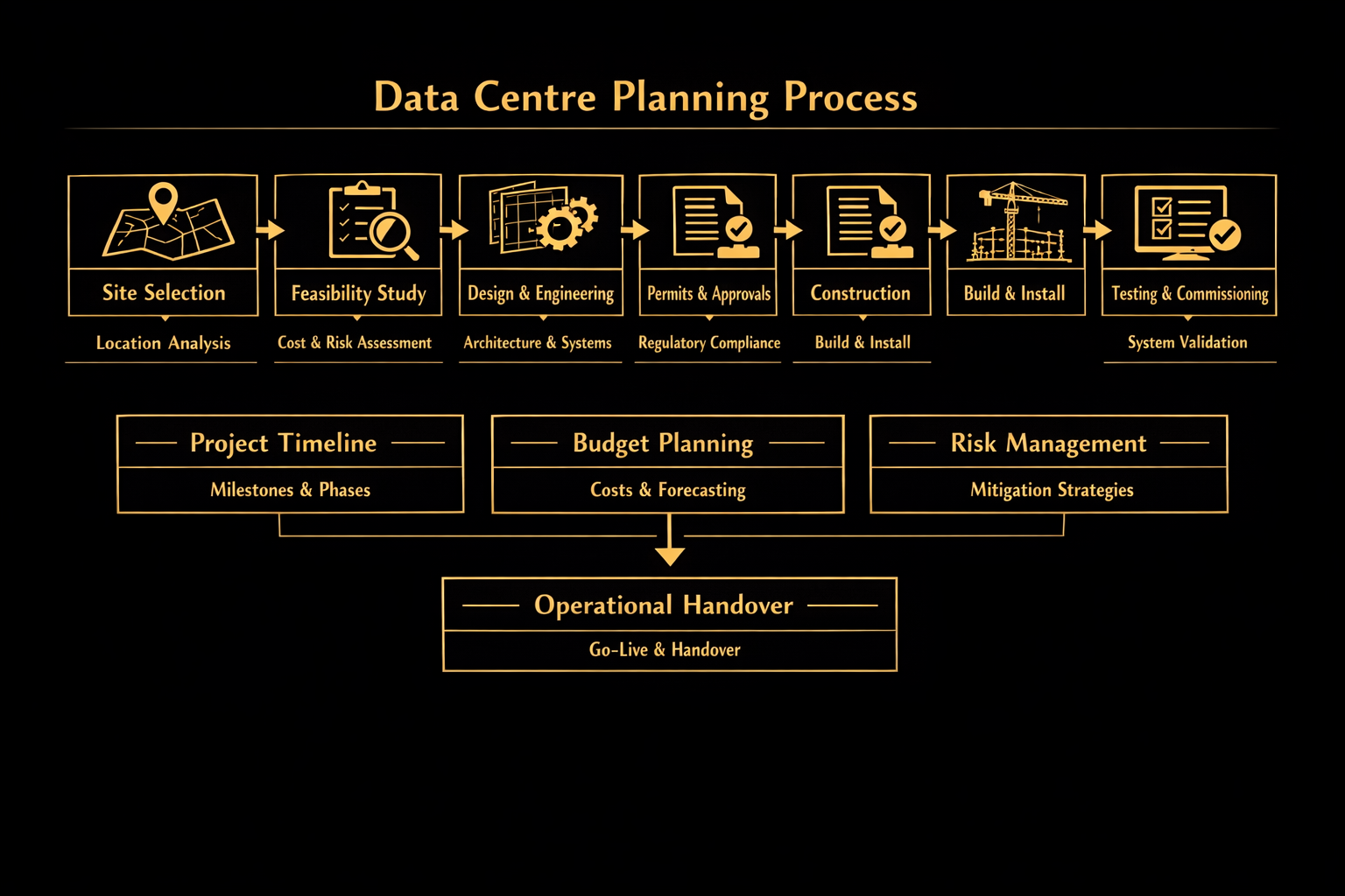 From site acquisition to energised rack, ML Harris structures and delivers data centre assets across the UK and Europe. Operators, hyperscalers and capital partners engage us when speed and certainty matter.