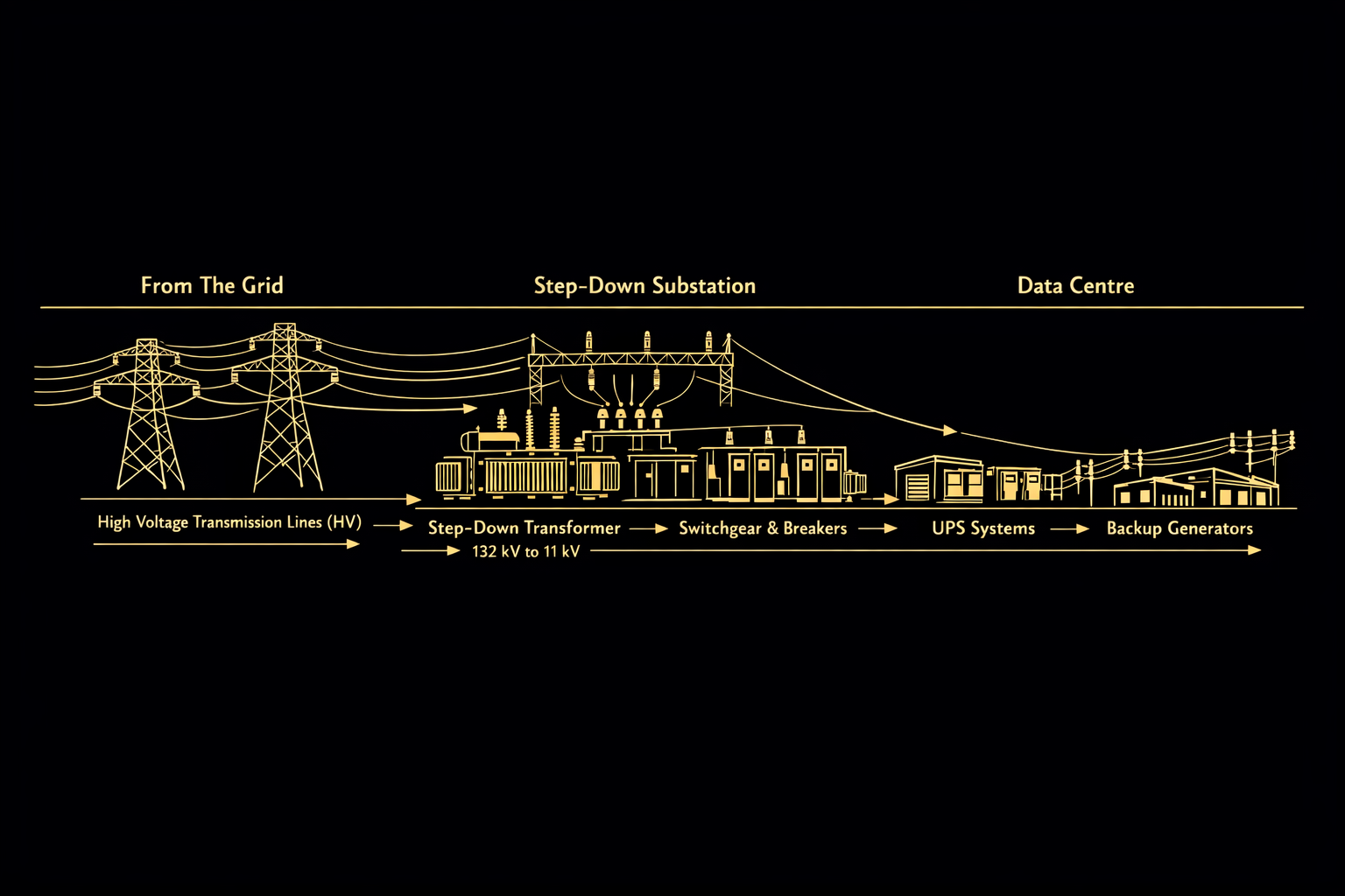 Grid constraints stall more data centre projects than any other factor. ML Harris secures grid connections, structures power infrastructure from HV substation to UPS, integrates renewable energy sourcing and delivers ground-level power feasibility assessments. Power is where timelines break. We keep them moving.